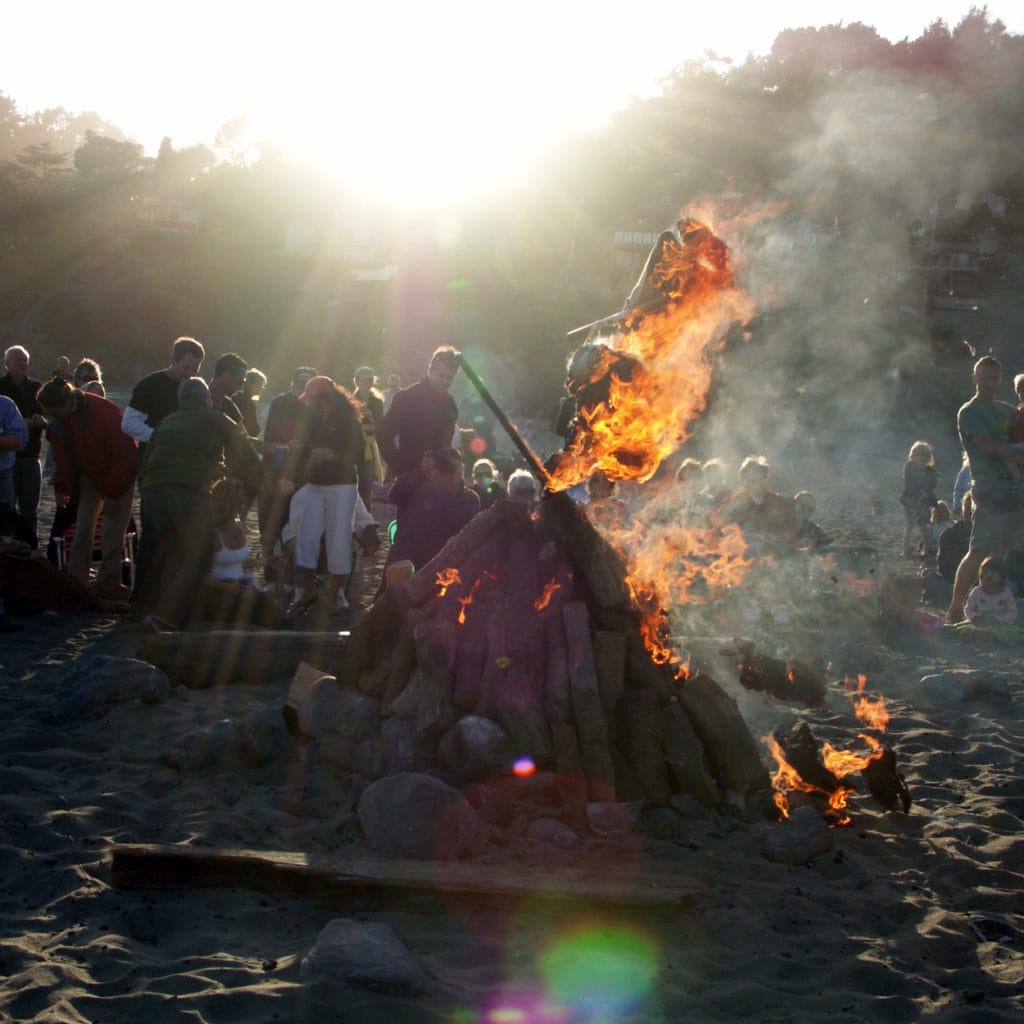 De grands bûchers sont allumés ce soir-là et les personnes dansent autour où à côté.